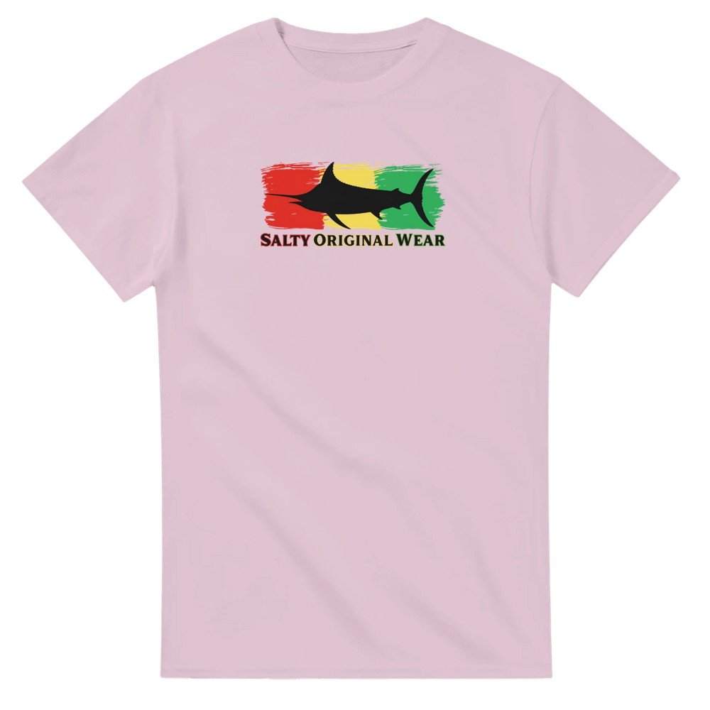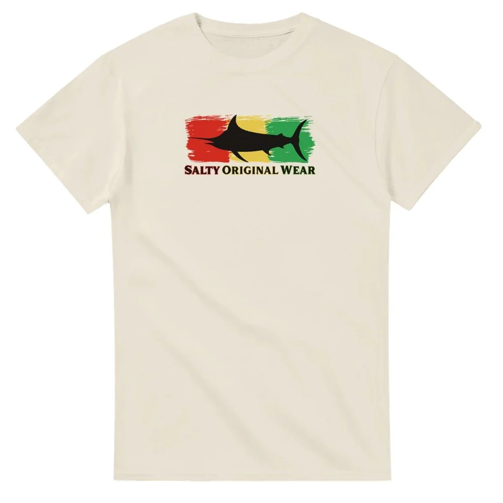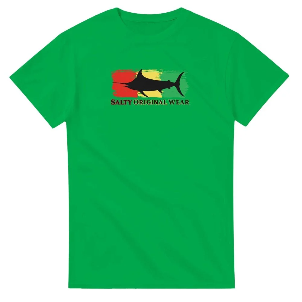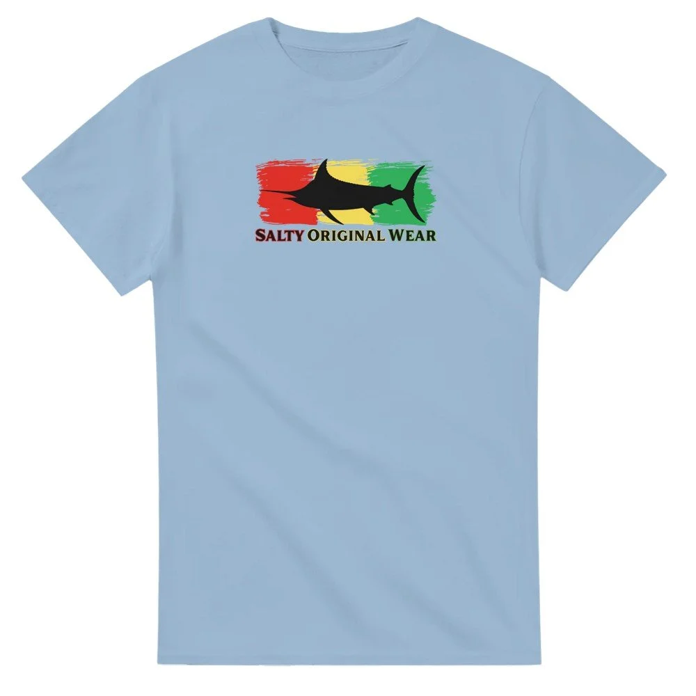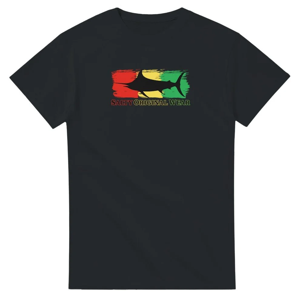This heavyweight cotton t-shirt is a durable staple product with a classic fit. One of the most popular items, it has a relaxed style made for casual wear. Black Marlin Front Design.